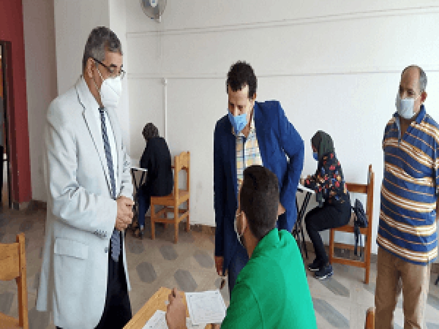 Prof. Dr. Hussien Almaghrabi, Benha University Vice-president for Education and Students ' Affairs has inspected the conduct of 2nd term exams 2019/2020 for final year students at the Faculty of Applied Arts in the presence of the Faculty Dean and the Vice-deans. During his tour, Almaghrabi has reassured for the conduct of exams and the University precautionary measures to limit the spread of novel Corona Virus "Covid-19