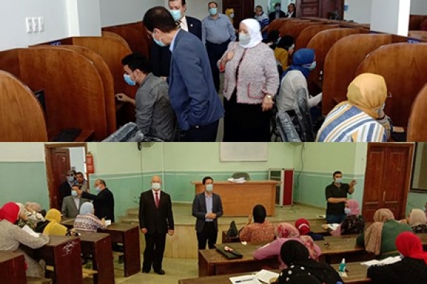 Prof. Dr. Nasser El Gizawy commends the implemented precautionary measures to protect students and employees during exams process such as sterilization of committees, checking students' temperature, keeping suitable spaces among students and wearing masks. In his word, El Gizawy said that Benha University is keen on providing a safe environment and a suitable psychological atmosphere for students during exams, especially in light of the current circumstances and facing the Corona pandemic.