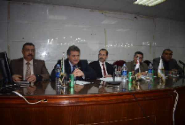 Prof.Dr. El-Sayed EL-Kady, the university president meets with several faculties’ members and teaching assistants during a workshop. This workshop was moderated by prof.Dr. EL-Sayed Fouda, the dean of the faculty of law, prof.Dr. Mahmoud Mansur, the faculty of law deputy of community service and environment development and prof.Dr. Khalid Eswai, the coordinator of the student activities. They discussed many topics like, the importance of supporting the scientific and applied research to solve the society problems and other- higher education related issues.