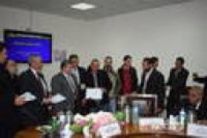 The leaders council of Benha University, under the presidency of prof.Dr. El-Sayed EL-Kady, the university president, hands the certificates to the students who passed the training program in the fields of renewable energy and electricity, which was organized by Solara-cil Academy in the cooperation with the center of geometrical consultations at the faculty of engineering/Shubra. The university president stresses that the university is keen on training the graduates to link education to the labor-market.