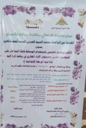 The master thesis discussion of researcher/ Muhammad El-Sayed el-Araby el-Sayed Ahmed Shahin was discussed on Tuesday, 30-8-2016. The discussion was held in the conference hall in the faculty.